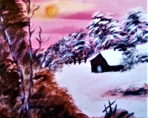Her formal training began at Loudoun Valley High School in Purcellville, Virginia, where she discovered her passion for painting and began refining her technique. In 2019, Bonnie’s artistic evolution took a transformative turn when she encountered the work of Bob Ross. His Wet-On-Wet method not only inspired her but unlocked a new level of confidence and creative freedom. Today, Bonnie paints everything from serene nature scenes and majestic horses to beloved pets, abstract compositions, and iconic personalities—each piece infused with her belief that “you can paint anything you set your mind to.”
